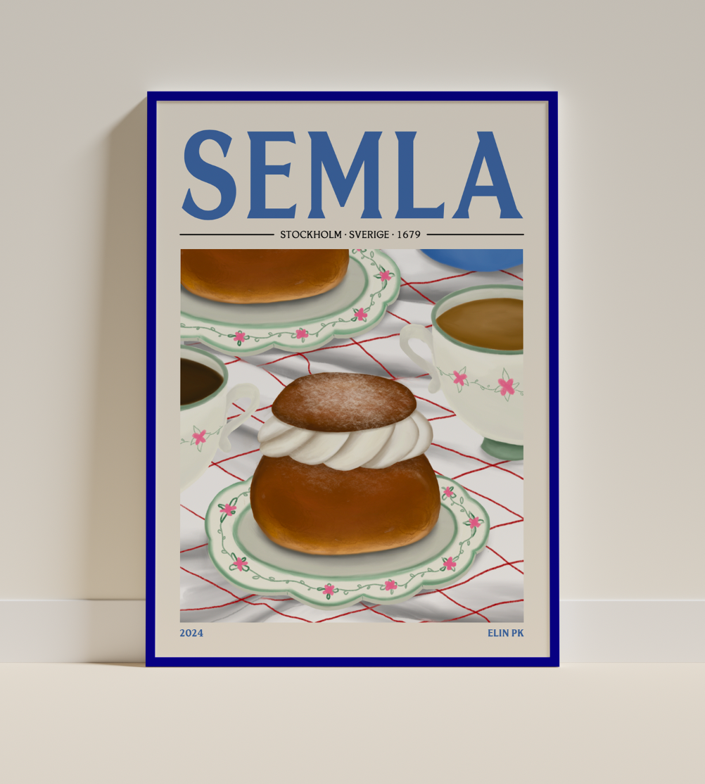 Do you think Semla Day is the best day of the year? Yes, then this is a poster for you! Elin PK Semla Poster in blue, green, white and brown. High quality print on 180gr FSC certified matte paper. Sold in sizes 30x40 cm, 50x70 cm and 70 x 100 cm. Made in Sweden. Frame not included.