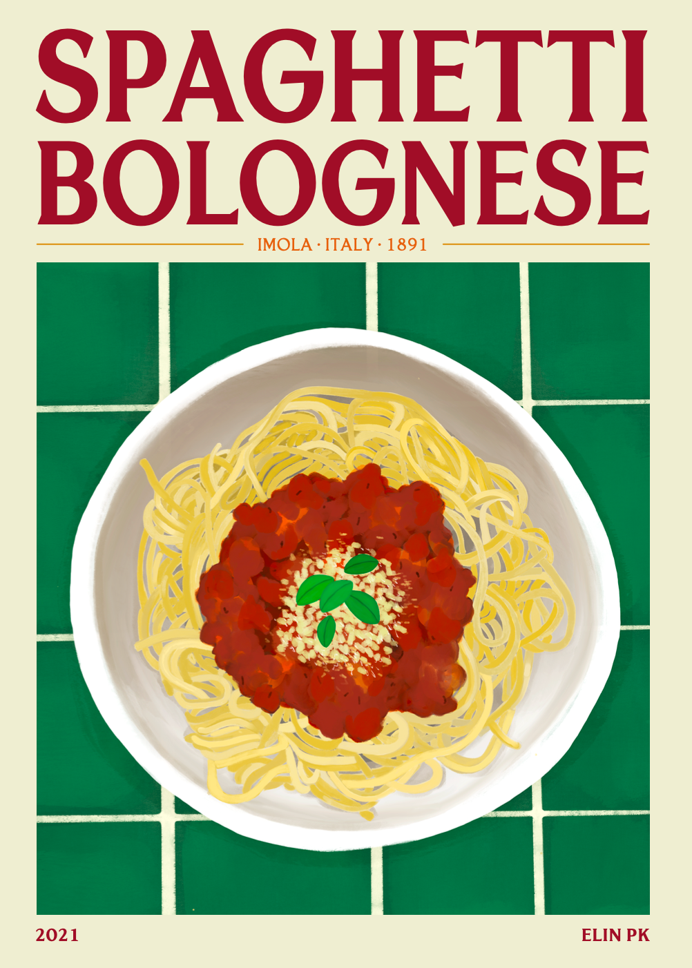 Perfekt för matälskare och kockar som vill hylla den tidlösa smaken av Spaghetti Bolognese. Framkalla doften av tomat och kärlek och njut av en smakresa direkt på din vägg! Elin PK Spaghetti Bolognese Poster i rött, grönt, gult och beige. Högkvalitativt print på 180gr FSC certifierat matt papper. Säljs i storlekarna 30x40 cm, 50x70 cm och 70 x 100 cm. Tillverkad i Sverige. Ram ingår ej.